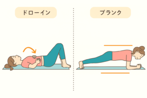 「ドローイン(お腹をへこませる呼吸法)」や「プランク(腕立て伏せの姿勢キープ)」で、腰を守る力を育てておくのもオススメです。