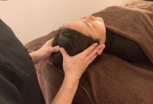 頭部のマッサージ・目のツボへのアプローチに加え、目元を温めながらの首肩のマッサージ~ハンドマッサージ♪
